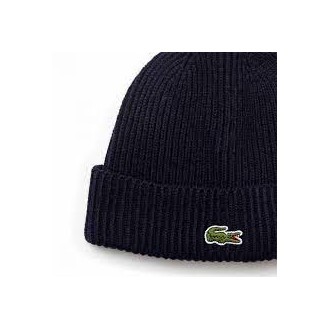 LACOSTE BONNET CÔTELÉ EN LAINE MARINE BLEU