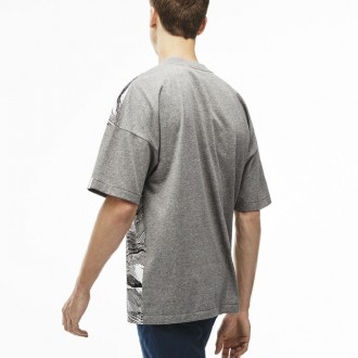 T-shirt Lacoste live col croisé bi-matière imprimé blanc/noir-gris
